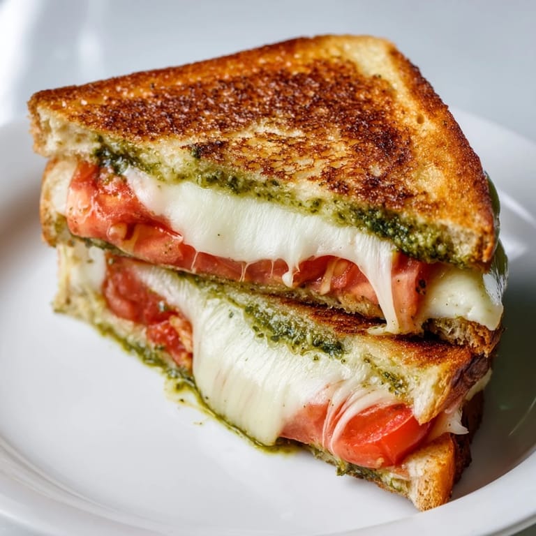 Save My neighbor Maria handed me a jar of homemade pesto over the fence one summer afternoon, insisting I try it on something other than pasta. I had tomatoes blushing on the counter and a ball of mozzarella I'd grabbed impulsively at the market. What happened next in my skillet felt less like cooking and more like orchestrating a small, delicious miracle. That first bite, with the pesto mingling into molten cheese and sweet tomato, made me forget every plain grilled cheese I'd ever settled for.