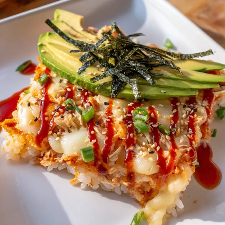 - Let it rest for five minutes so the layers set slightly, then add your avocado, nori strips, sesame seeds, and any extra sriracha or mayo drizzles. The contrast between the warm, creamy casserole and the cool, fresh avocado is what makes this dish sing.