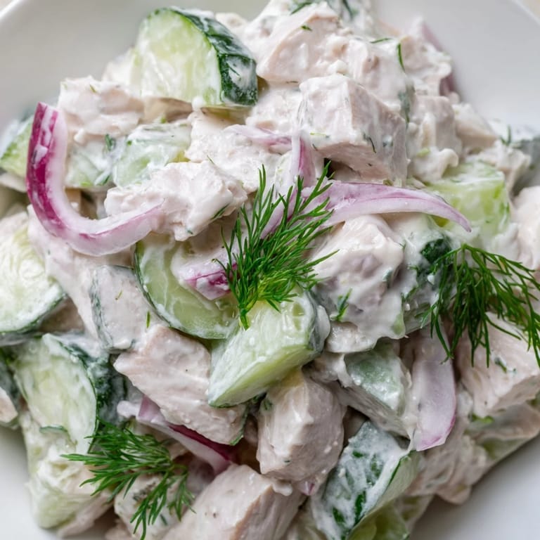 Save My grandmother had this knack for making summer meals feel effortless, and her cucumber salads were legendary. When I started experimenting with adding protein to make them more filling, this creamy chicken version emerged from a particularly hot July afternoon when I had leftover grilled chicken and an abundance of garden cucumbers. The way the cool, tangy dressing clings to the tender chicken while the cucumbers stay crisp became exactly what I craved on days when turning on the oven felt like a punishment.