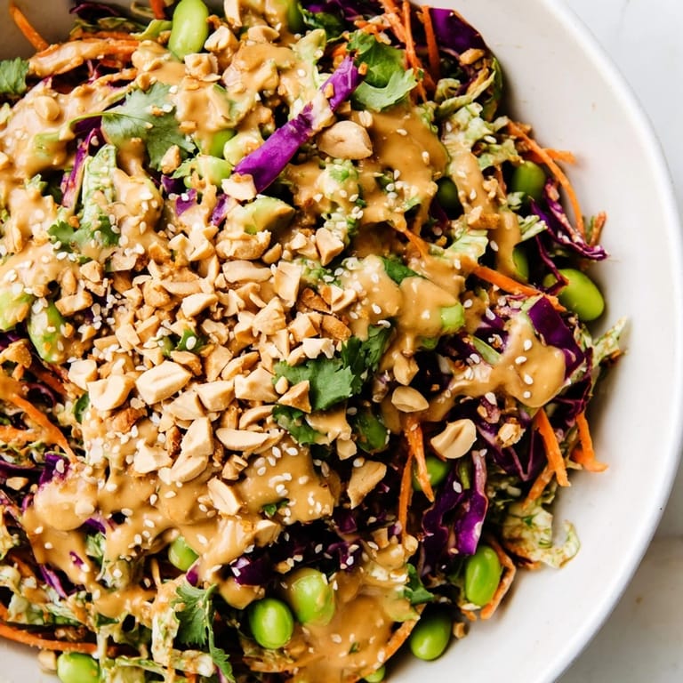 Save The crunch hit me first, loud and satisfying in a quiet kitchen on a Tuesday night when I had zero patience for complicated cooking. I had dumped half my crisper drawer into a bowl, whisked together whatever I had in the pantry, and somehow ended up with the kind of salad that made me forget I was eating vegetables. The peanut dressing clung to every shred of cabbage like it belonged there, and I ate standing at the counter, fork in hand, wondering why I had ever bothered with sad desk lunches.