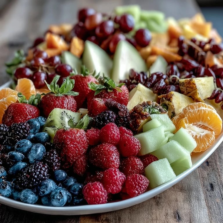 Setting up this fruit table at my cousin's backyard party, I realized halfway through that the afternoon heat was wilting my carefully arranged mint leaves, so I started tucking them in just before people arrived instead. That small adjustment changed everything—suddenly the table looked alive and intentional rather than pre-made. It became the thing people actually gathered around instead of just passing by.