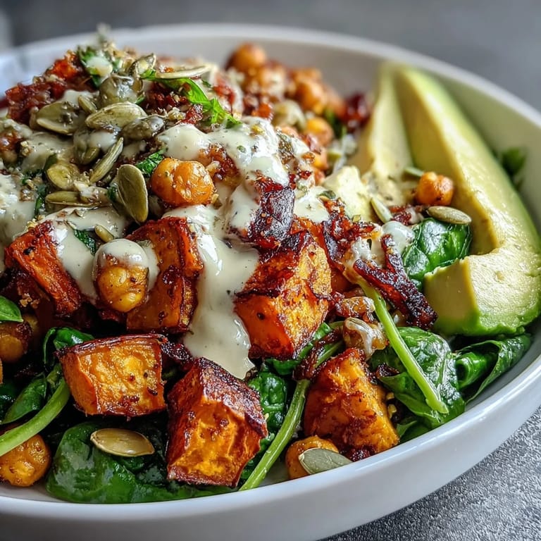 Save There's something about a bowl that feels less like cooking and more like assembling a small, edible work of art. I discovered this roasted sweet potato and chickpea combination on a Tuesday evening when my fridge was half-empty and my motivation was halfhearted, but somehow those caramelized edges and crispy legumes turned into something I've made at least twice a week since. The smoky chipotle tahini dressing was the unexpected part that made me realize how a single sauce could transform simple roasted vegetables into something genuinely crave-worthy.