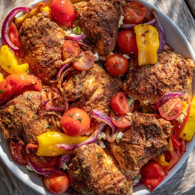 You can use chicken breasts instead of thighs, but start checking them at 20 minutes because they cook faster and dry out quicker. If you want more vegetables, throw in sliced zucchini, eggplant, or even baby potatoes, just cut everything the same size so it roasts evenly. Sometimes I skip the olives when I'm cooking for picky eaters and add a handful of capers instead for that same salty punch.